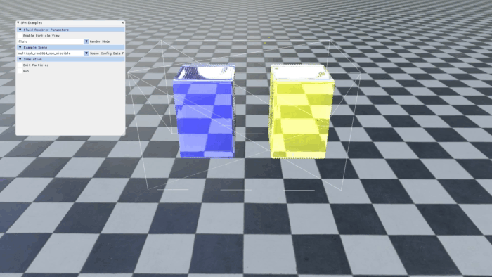 This project implemented several SPH-related papers using CUDA, including Weakly compressible SPH (SCA2007), Position based fluid (SIGGRAPH2013), Implicit incompressible SPH (TVCG2014), Divergence-free SPH (SCA2015), Volume fraction-based multiple-fluid (SIGGRAPH2014) and Helmholtz free energy based multiple-fluid (SIGGRAPH2015).